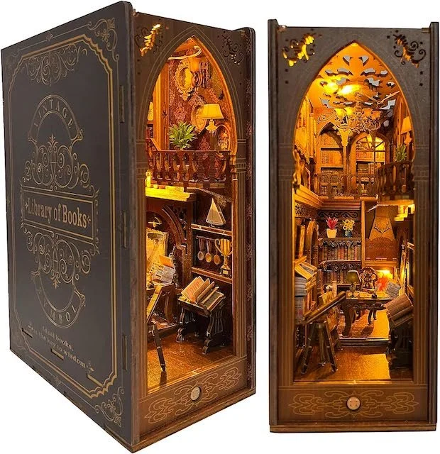 N is for Nook, as in Book Nook. The definition of a book is a ‘mini world created within your bookshelf’ and can be anything from the diorama of an alleyway or the inside of a small house. These took off a number of years ago, and are thought to have originated from a Japanese artist called Monde back in 2018, and are enchantingly unique gifts especially for readers.